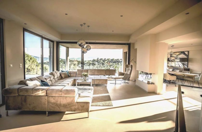 -Un grand séjour lumineux avec salle à manger ouverte sur une magnifique terrasse ensoleillée